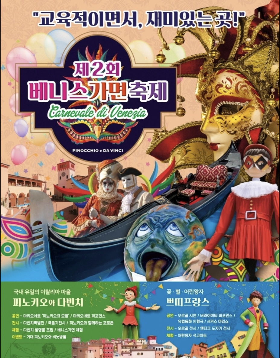 경기도 가평에 위치한 이탈리아마을 & 쁘띠프랑스에서는 겨울철, 베니스 카니발 분위기를 그대로 옮겨놓은 **"베니스 가면축제"**와 반짝이는 조명 속에서 펼쳐지는 **"별빛축제"**가 열립니다.