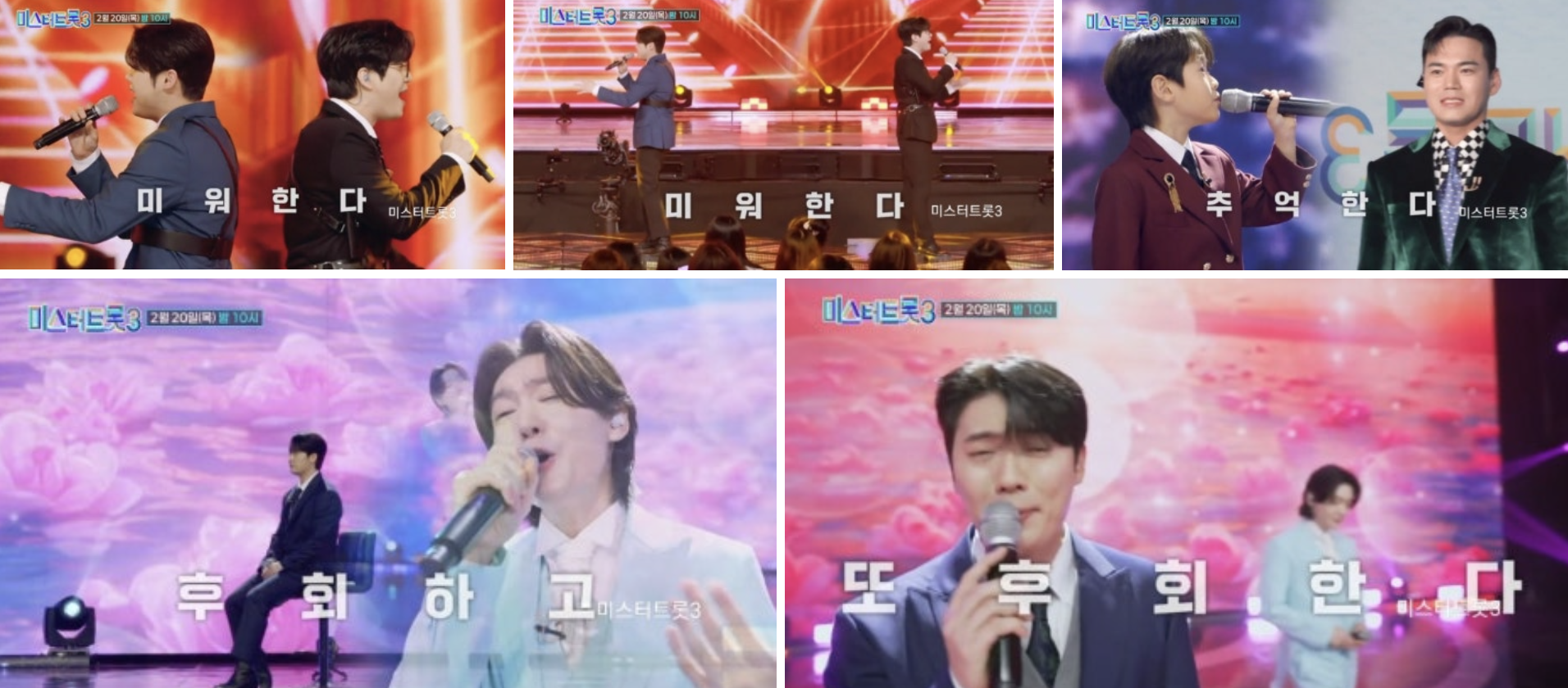 - 한 곡 대결: 기존에 1:1 또는 팀 대결로 진행되던 형식에서, 이번에는 더 극적인 긴장감을 주기 위해 ‘한 곡’을 두 참가자가 함께 부르는 형식을 취했습니다. 똑같은 곡을 어떻게 소화하느냐에 따라 점수가 확 달라지기 때문에, 트롯 창법과 무대 장악력에서 한순간의 실수도 용납되지 않는 승부가 벌어졌죠.