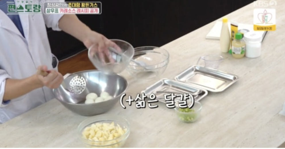 감자와 달걀을 으깨 마요네즈, 고추냉이, 연겨자 등으로 버무려 넣는 독특한 레시피가 공개되었습니다.