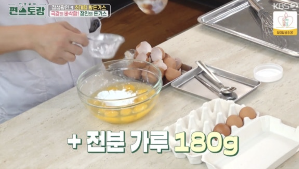 – 달걀물을 넉넉히 준비하는데, 방송에서는 달걀 12개를 사용했습니다.