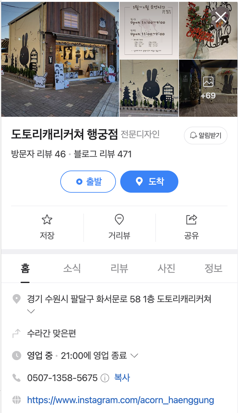 만약 허스트 커피에서 달콤함을 제대로 만끽했다면, 행궁동의 또 다른 재미 요소인 캐리커처 체험도 고려해 보세요. 특히 도토리 캐리커처는 최근 방송에서 개그맨 허경환, 미미, 조혜련, 송은이 등 여러 인물의 특징을 재미있게 살려 화제가 되었습니다.