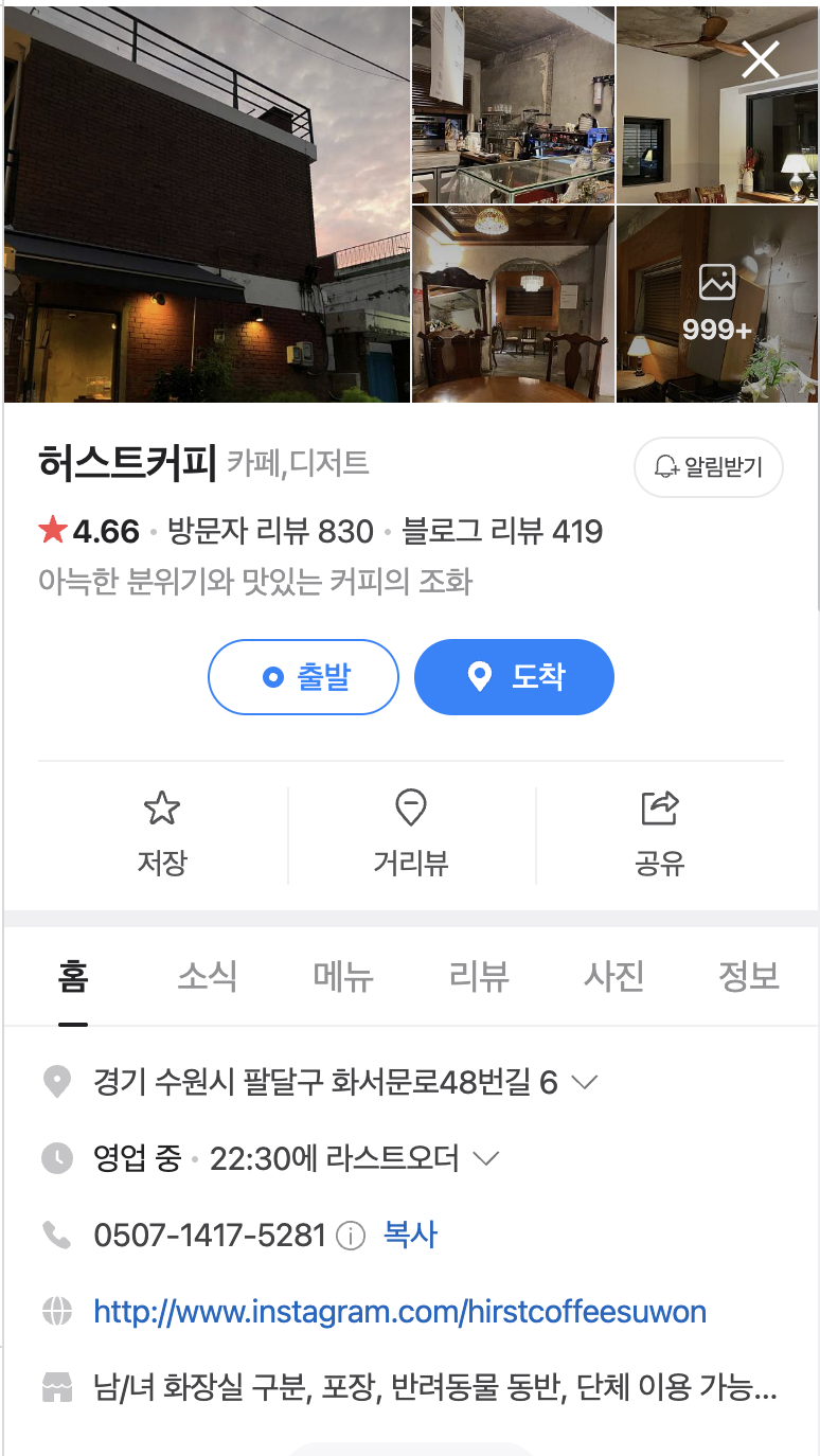 수원 화성의 중심부라 할 수 있는 행궁동에 자리 잡고 있어, 화성행궁을 둘러본 뒤 잠시 쉬어 가기 좋은 동선입니다. - 주변 명소: 화성행궁, 수원화성박물관, 다양한 공방과 갤러리가 즐비해 있죠. 주말엔 거리 공연이나 플리마켓이 열릴 때도 있어, 걸어 다니며 구경하는 재미가 쏠쏠합니다.